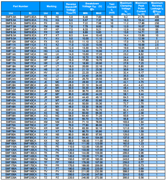 11、典型的最大溫度系数△Vbr =0.1% x Vbr@25°C x △T