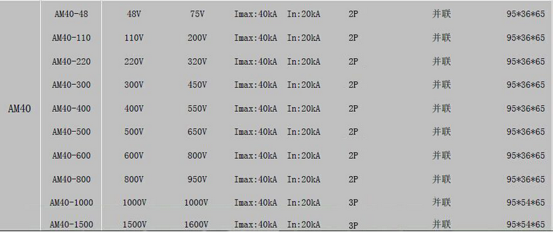 ⑵ 在逆变器与负载设备之间加装第二级交流电源防雷器,型号根据工作电压选择,一般为380V三相电或220V单相单。根据单三相选择不同的交流防雷器。目前分布式屋顶光伏发电系统里面用的交流防雷器主要是三相电源防雷器型号AM40A(380V,4P,40kA),单相电源防雷器型号AM40C(220V,2P,40kA)。