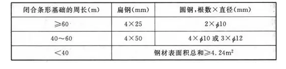 (3)利用闭合条形基础内的钢筋作接地体时可按本表校验,除主筋外,可计入箍筋的表面积。