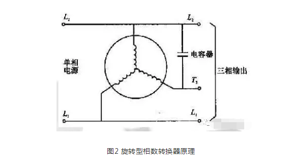 旋转型的相数转换器是通过单相电源进行供电而产生的一种电机,该种电机能够满足电机、电阻以及整流器等负荷的需求。该种转换器在输出时,是一种能够进行测量的正弦波。该种相数转换器本身就具有一种对称的三相定子绕组与改型的鼠笼式转子,当转换器通电之后,就会给其中一个绕组单相电压,这就产生一种正弦波与电压的内磁场。且当转子进行旋转的时候,通过感应,就能够获得与实用电源一样的电源。旋转型相数转换器的基本特性是三根相线中有两根是子系统的电源,其输出特性是和系统电源的人造相电压的基本变化特点相互适应的。旋转型相数转换器在安装上比较简单,一般采用熔丝就可以了,可手动、自动以及远程操控。其原理见图2。 www.sbdz.com